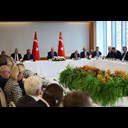 Türkevi’nde düzenlenen toplantıda, Enerji ve Tabii Kaynaklar Bakanı Alparslan Bayraktar, Hazine ve Maliye Bakanı Mehmet Şimşek, Sağlık Bakanı Kemal Memişoğlu, Sanayi ve Teknoloji Bakanı Mehmet Fatih Kacır, Ticaret Bakanı Ömer Bolat ve ABD’nin Türkiye Büyükelçisi Thomas J. Barrack yer aldı.